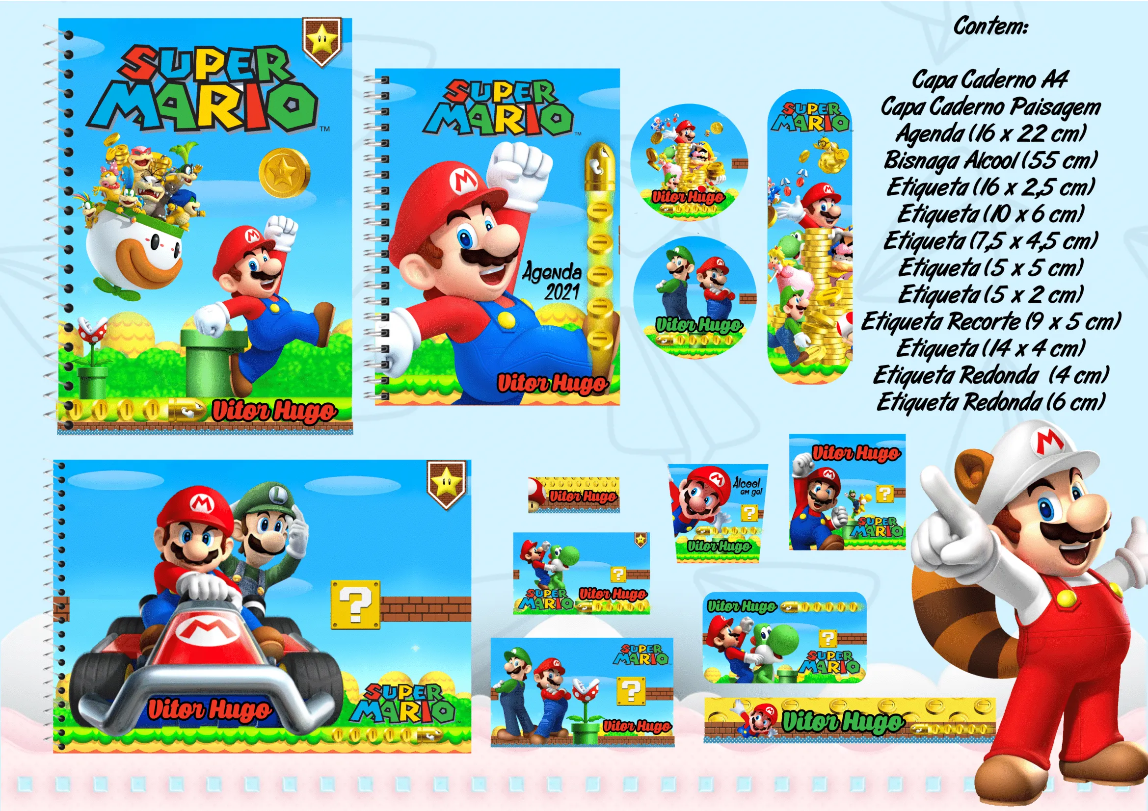 ✨ O Que Está Incluído no Produto? Etiquetas Escolares Super Mario Bros