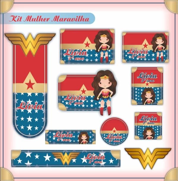 Se você está procurando uma maneira prática, econômica e charmosa de identificar o material escolar das crianças, a nossa Etiquetas Personalizadas Mulher Maravilha é exatamente o que você precisa. Afinal, com um design exclusivo e arquivos digitais de alta qualidade, você pode imprimir quando quiser e manter tudo organizado com facilidade.