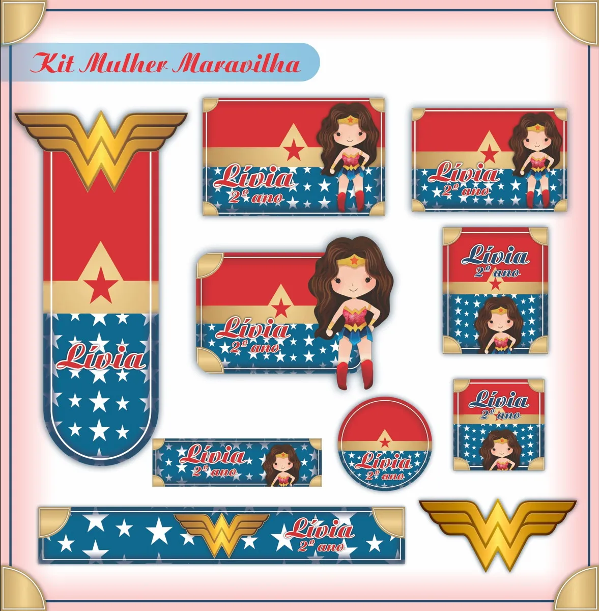 ✨ O Que Está Incluído no Produto? Etiquetas Personalizadas Mulher Maravilha