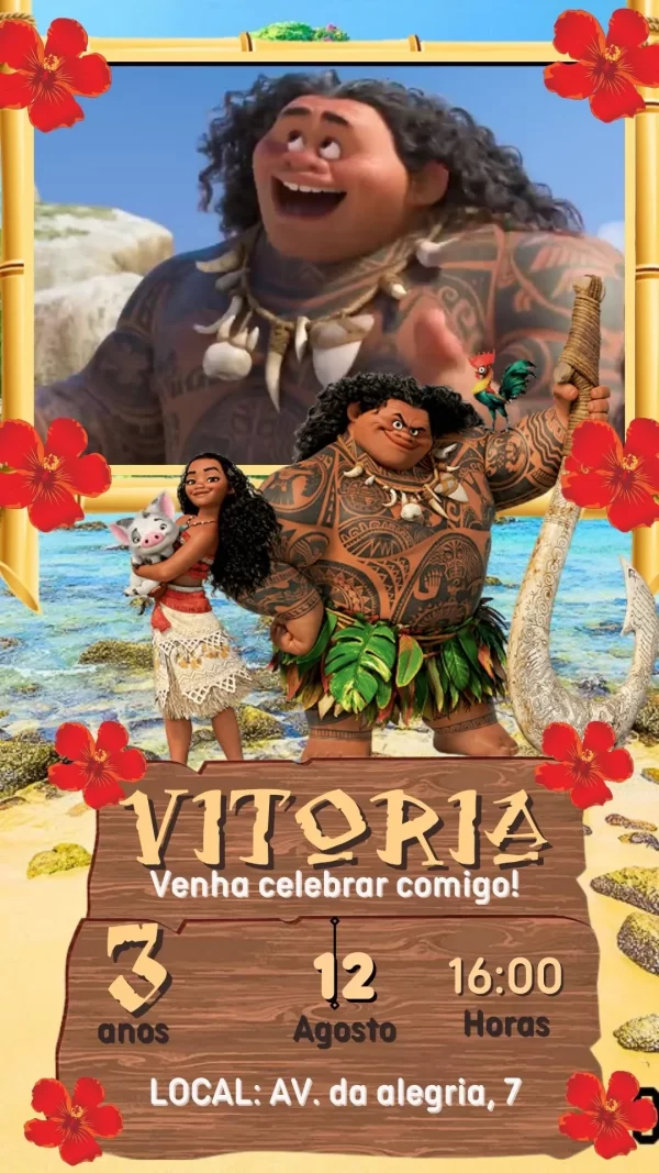 O Fazendo a Nossa Festa Convite Animado Moana não é apenas um convite, mas uma experiência visual que encanta e envolve. Ele traz toda a energia e o espírito aventureiro da Moana, garantindo que seus convidados sintam a emoção da celebração antes mesmo de chegar.