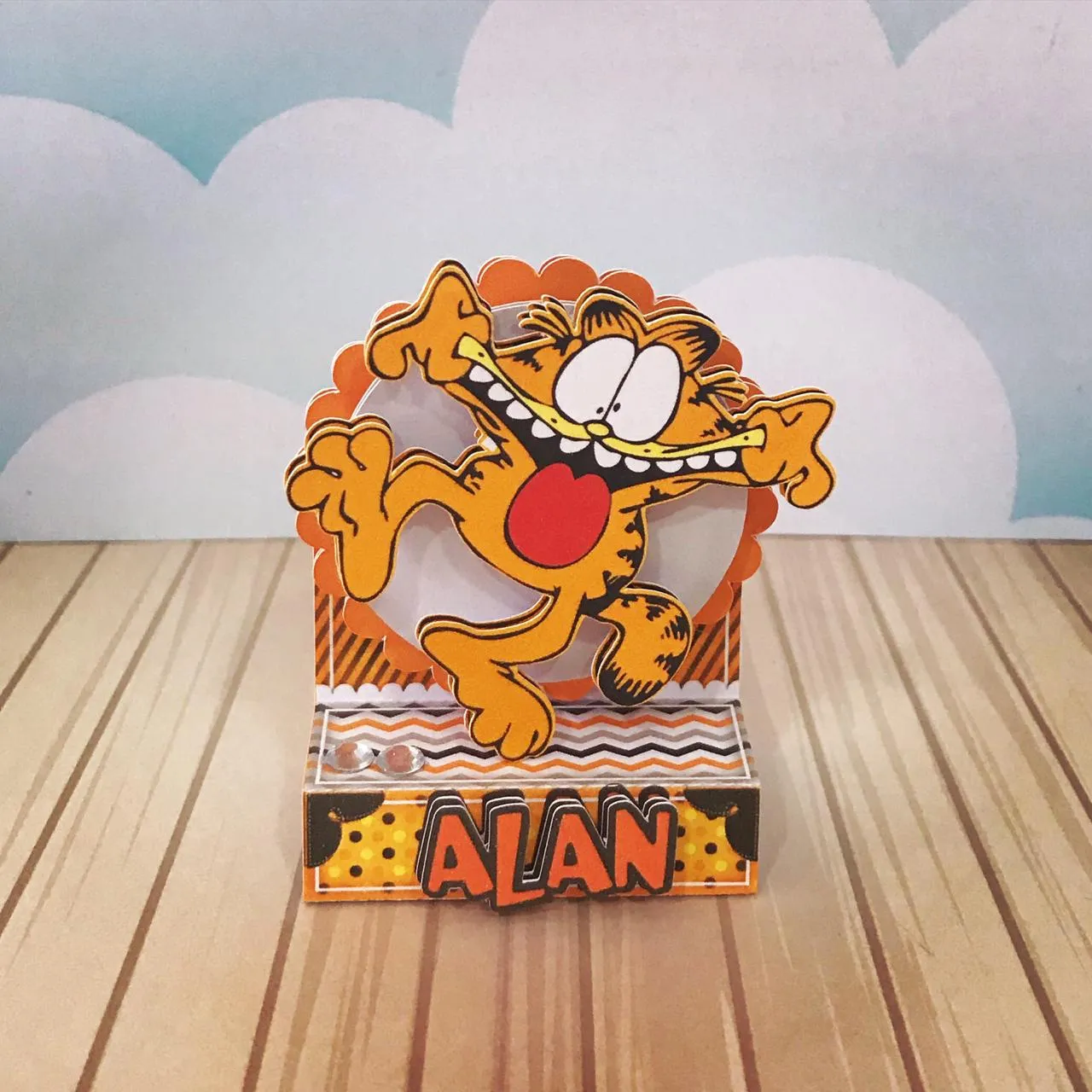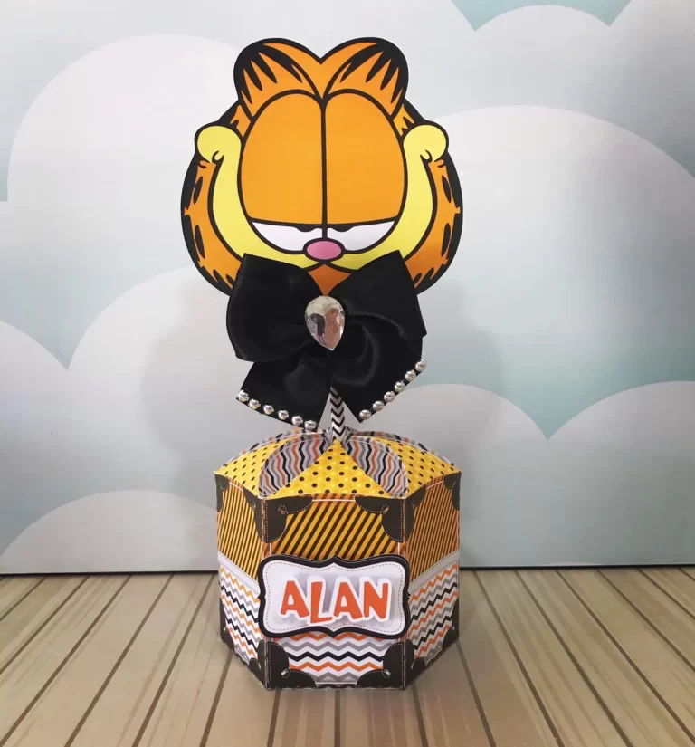 Tags: arquivo digital de corte, Garfield, centro de mesa para imprimir, lembrancinha de aniversário digital, decoração de festa infantil, festa personalizada , molde para Silhouette Studio, lembrancinha artesanal, festa feita à mão, decoração para festa temática, arte digital para recorte, lembrancinha criativa, centro de mesa digital