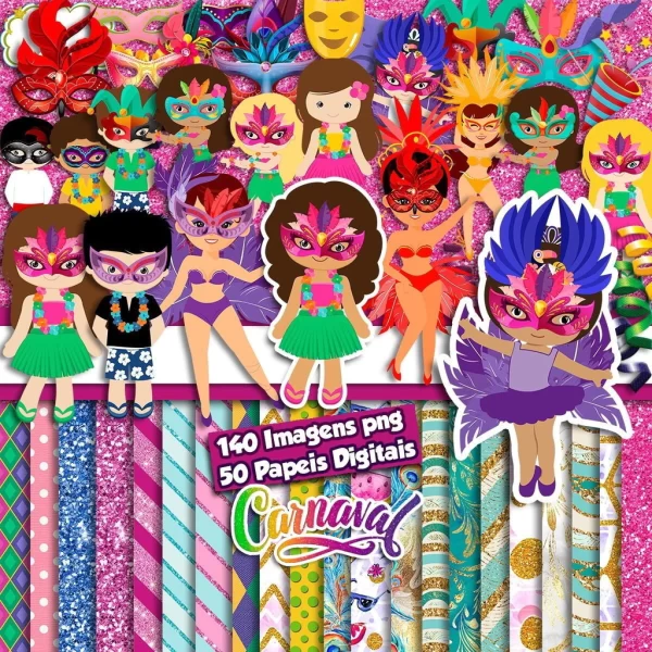 Leve toda a alegria e as cores do Carnaval para seus projetos com o Kit Digital Scrapbook e Cliparts Carnaval! Com elementos típicos da festa mais animada do Brasil, esse kit traz cliparts em PNG com fundo transparente e papéis digitais JPG que vão deixar suas criações vibrantes, divertidas e cheias de ritmo.