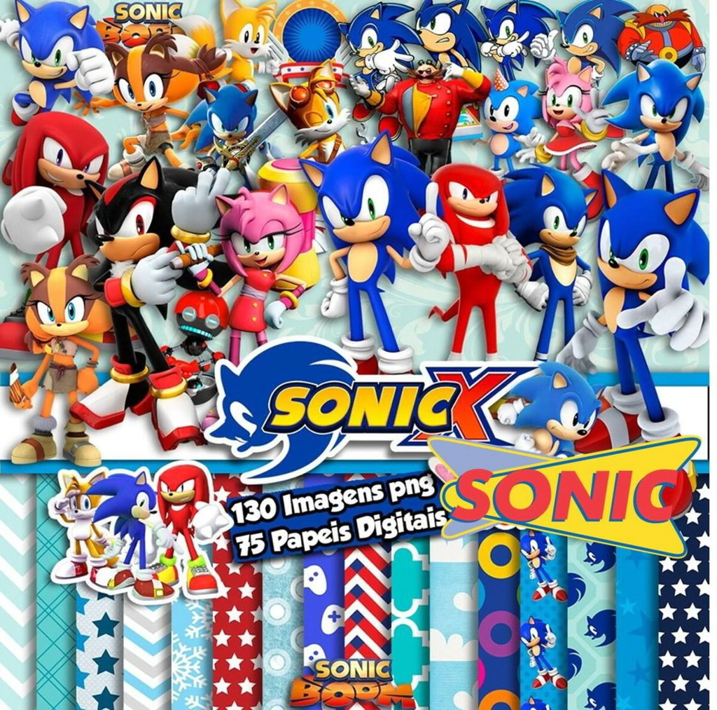 Acelere sua criatividade com o Kit Digital Scrapbook e Cliparts Sonic! Um pacote completo com os personagens mais icônicos da franquia Sonic em PNG com fundo transparente e papéis digitais temáticos, ideal para festas, convites, lembrancinhas, planners e personalizações escolares.