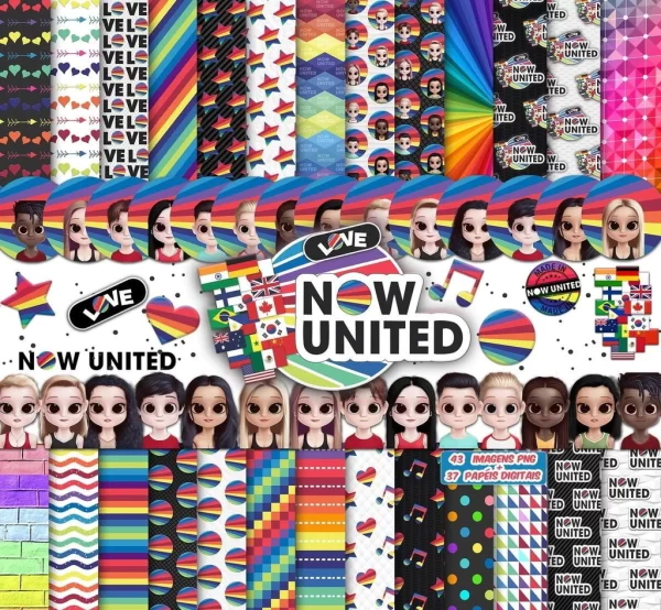 Para fãs de música, diversidade e estilo, o Kit Digital Scrapbook e Cliparts Now United é a escolha certa! Com os integrantes do grupo pop global e elementos coloridos, esse kit traz cliparts em PNG com fundo transparente e papéis digitais temáticos, ideais para festas, papelaria e criações digitais cheias de atitude.