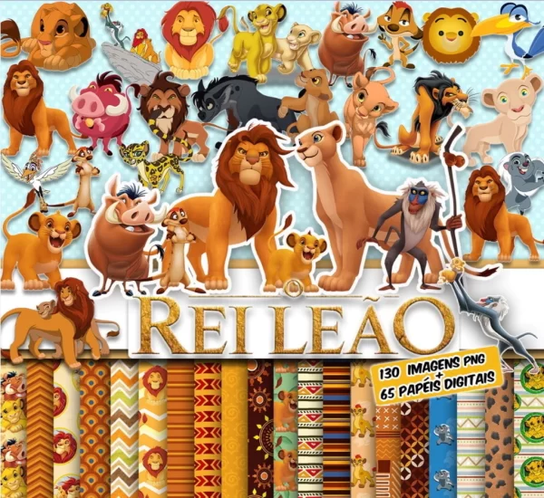Entre na savana e viva a aventura com o Kit Digital Scrapbook e Cliparts O Rei Leão! Com imagens em PNG com fundo transparente e papéis digitais temáticos, este kit é perfeito para festas, papelaria infantil, planners, etiquetas escolares e projetos criativos inspirados no clássico da Disney.