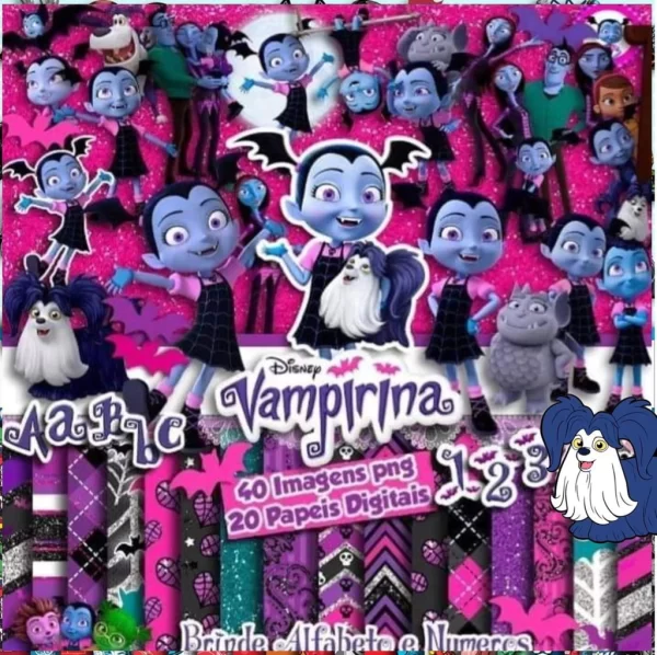 Deixe seus projetos com um toque divertido e assustadoramente fofo com o Kit Digital Scrapbook e Cliparts Vampirina! Perfeito para quem ama a simpática vampirinha azul da Disney, o kit conta com cliparts em PNG com fundo transparente e papéis digitais temáticos, ideais para festas, etiquetas escolares, planners e muito mais!