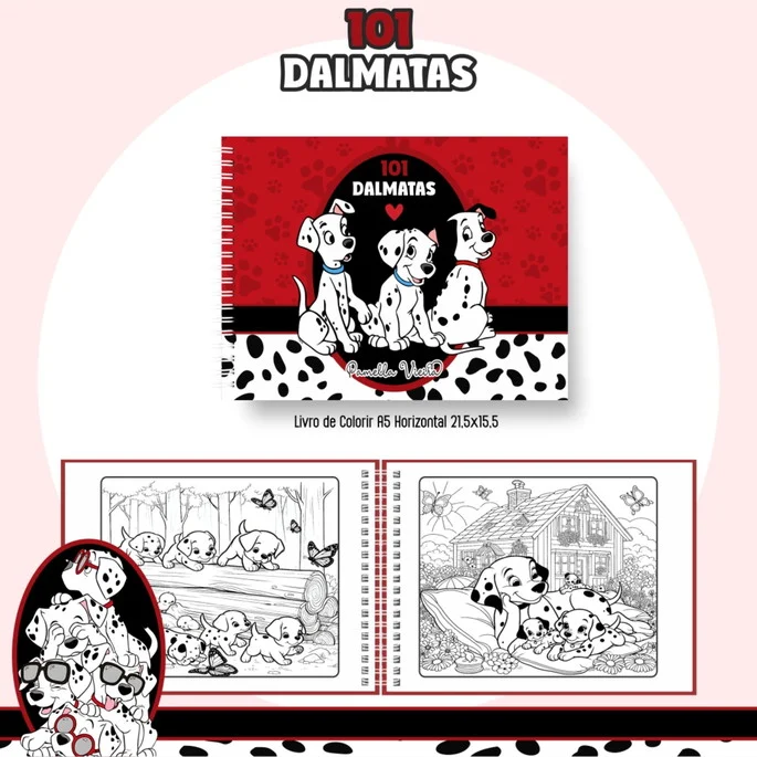 Livro de Colorir 101 Dálmatas Para Imprimir – Arquivo Digital PDF com Capa em PNG