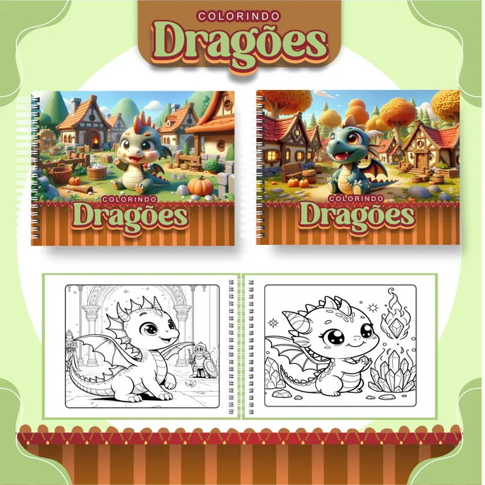 Livro de Colorir Dragões Para Imprimir – Arquivo Digital PDF com Capa em PNG