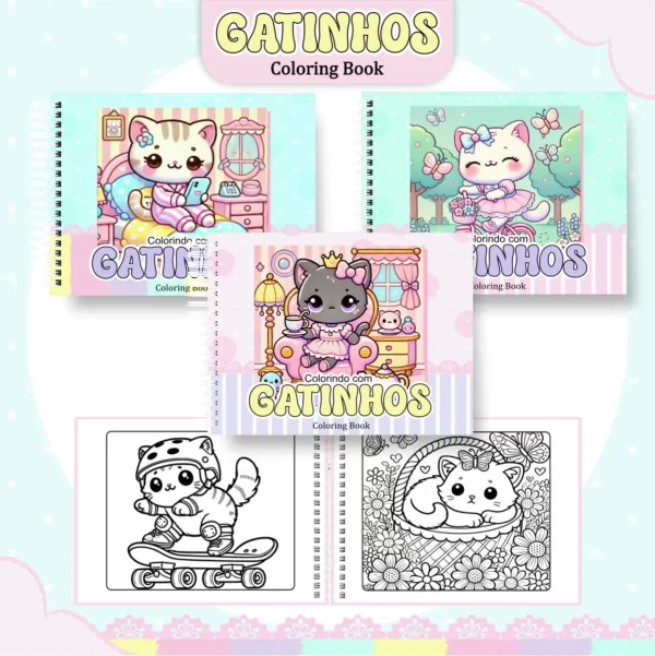Tags: livro para colorir, caderno de colorir, Gatinhos, livro de pintar, livro de colorir, desenhos para colorir, pintar em casa,