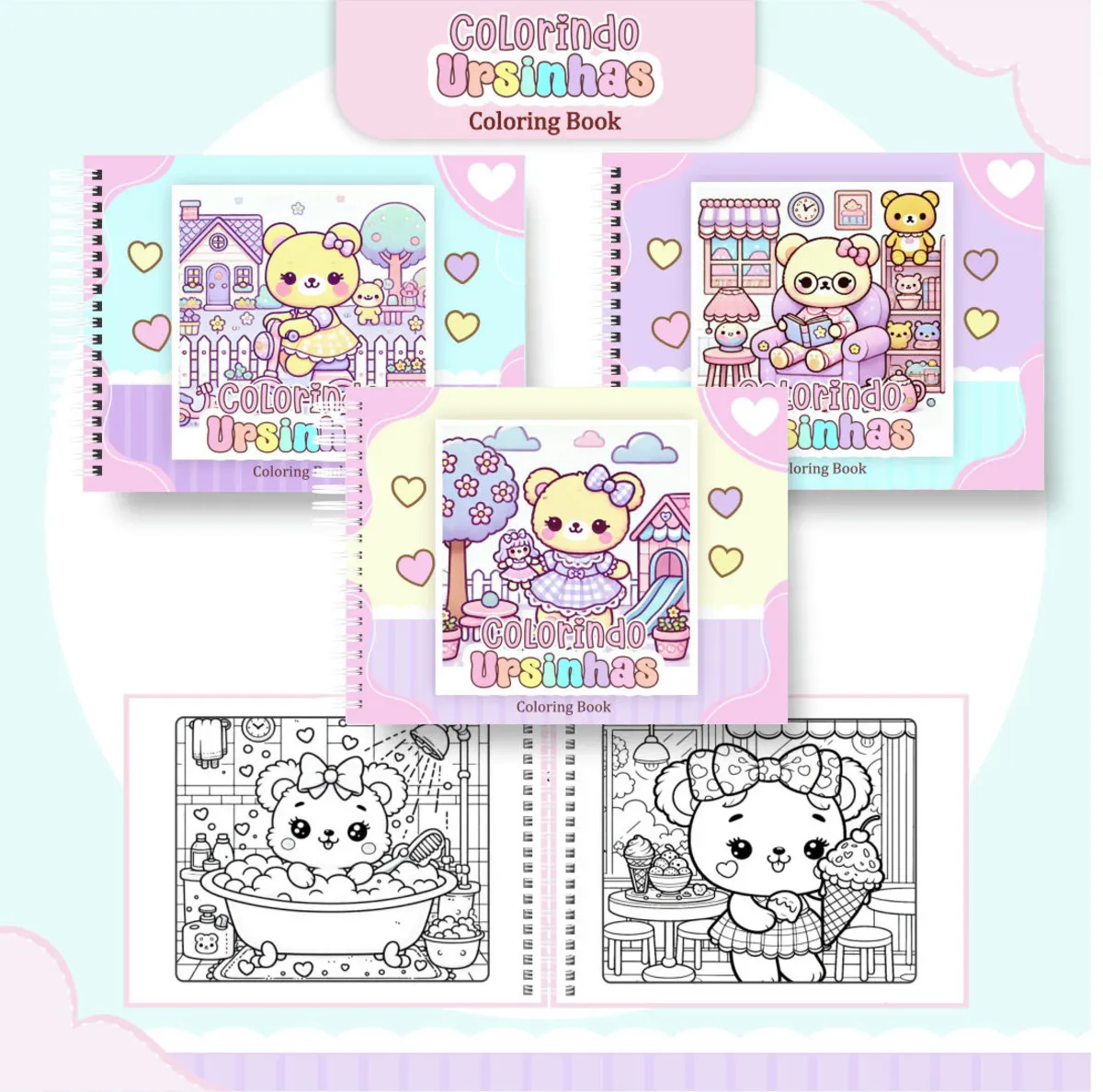 Tags: livro para colorir, caderno de colorir, Ursinhos Kawaii, livro de pintar, livro de colorir, desenhos para colorir, pintar em casa,