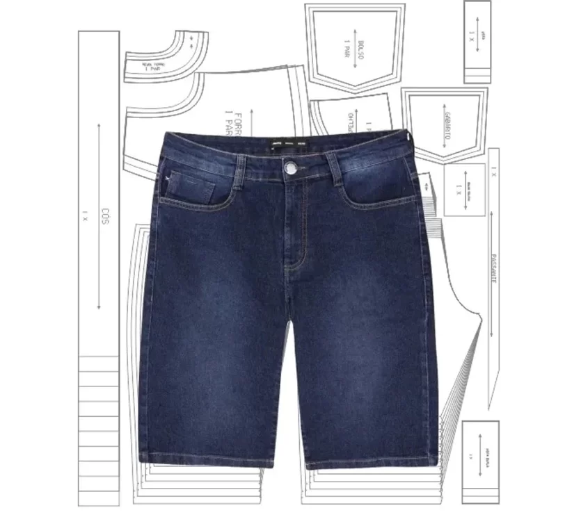 Garanta um molde prático, detalhado e pronto para transformar tecidos jeans em bermudas de alto padrão.