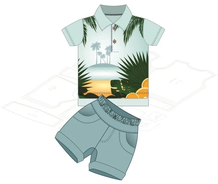 Molde Camisa e Bermuda Infantil Masculino — Moldes digitais para confecção de camisa e bermuda infantil masculina, com modelagem confortável e estilo casual, ideal para o dia a dia. Arquivos prontos para imprimir e costurar.
