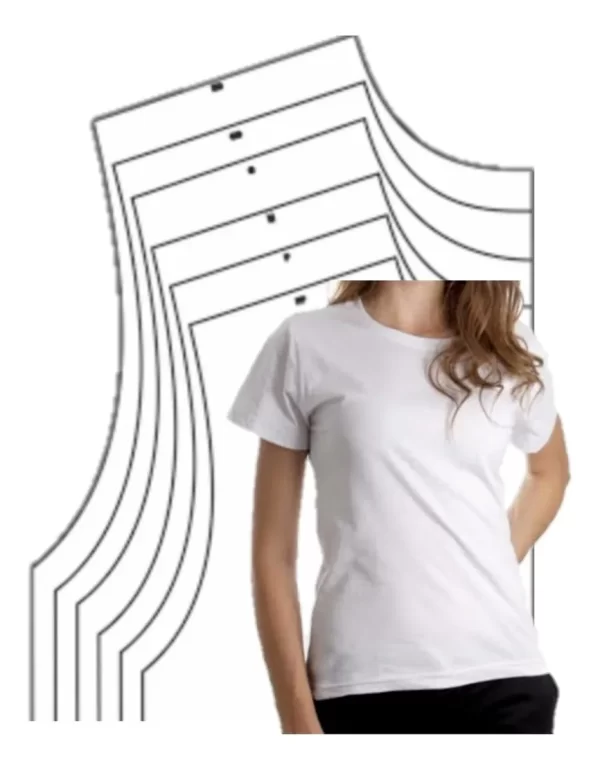 O Molde Camiseta Baby Look Feminina é perfeito para quem busca praticidade e estilo na hora de confeccionar roupas femininas ajustadas ao corpo. Com corte acinturado e moderno, esse molde oferece conforto e elegância para o dia a dia ou para a produção em pequena escala.