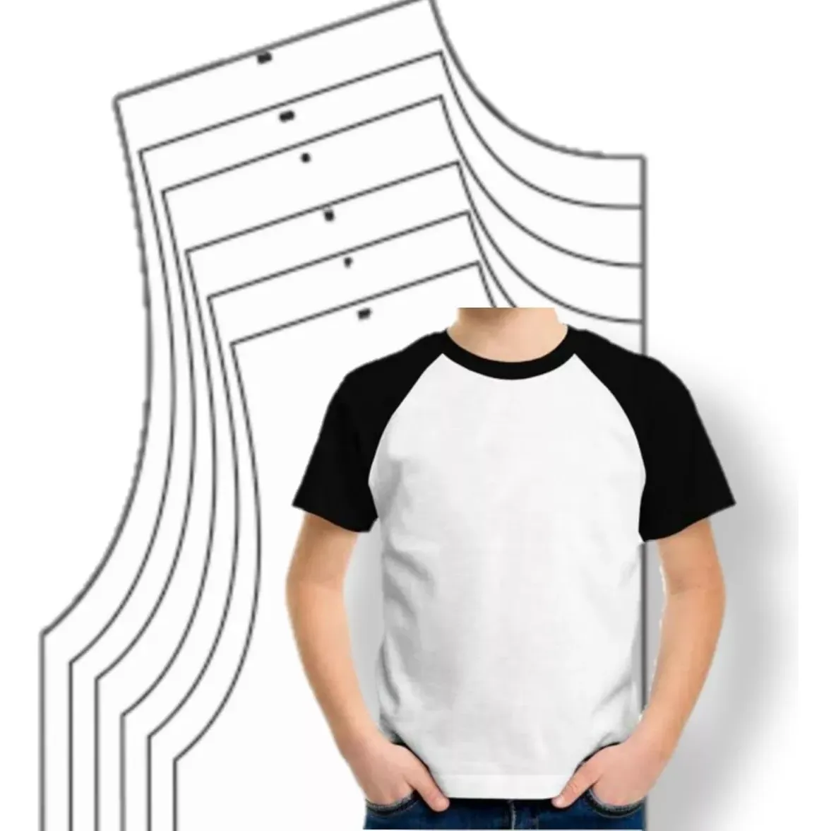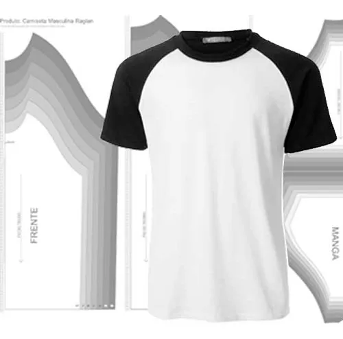 Modelagem de camiseta raglan com mangas estilo esportivo