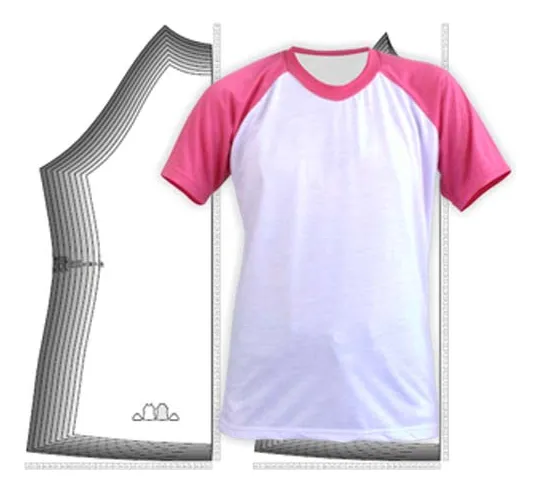 Molde Camiseta Raglan Masculino, Feminino e Infantil – PDF e CDR (PP ao G3 | 2 ao 14)
