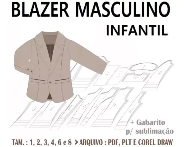 Molde de Blazer Masculino Infantil – 1 a 8 Anos (PDF e CDR)