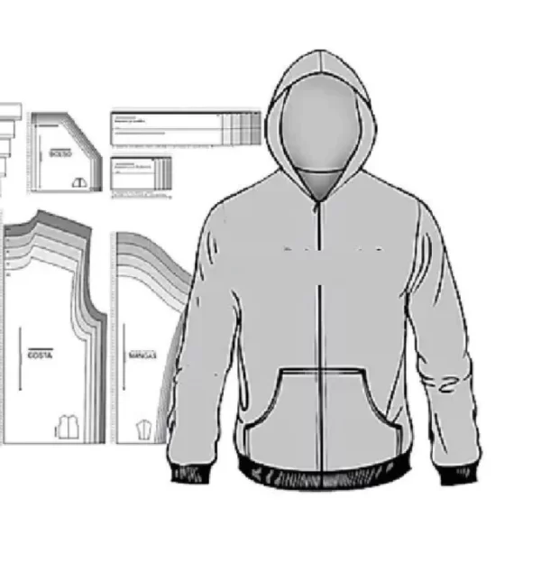 Molde de Moletom Canguru Masculino – Tamanhos PP ao GG (PDF e CDR)