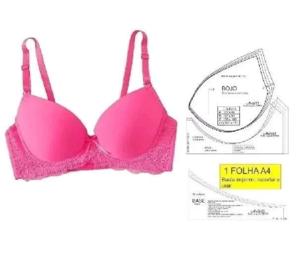 Crie peças íntimas com conforto, sustentação e estilo usando o Molde de Sutiã com Bojo, disponível nos tamanhos P ao GG. Este arquivo digital em PDF para imprimir e CDR para editar é ideal para produção de lingeries personalizadas e sob medida.