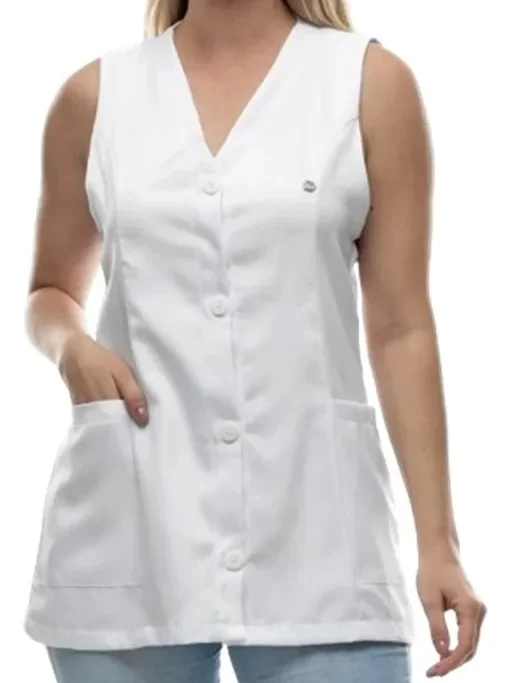 Com modelagem sem mangas (cavado), o jaleco proporciona leveza e conforto durante o uso em ambientes como clínicas, salões de beleza, spas e laboratórios.