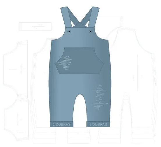 O Molde de Jardineira com Bolso Canguru para Bebê é ideal para confeccionar peças confortáveis, práticas e super charmosas.