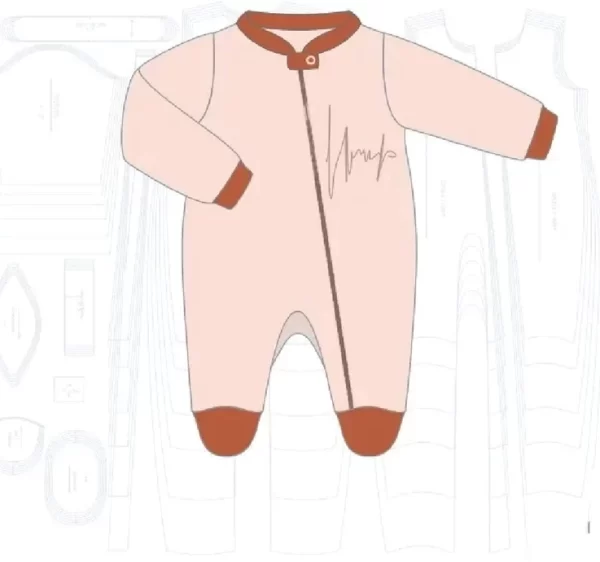 Molde Macacão Bebê Gola Padre com Pezinho – RN ao GG (PDF e CDR)