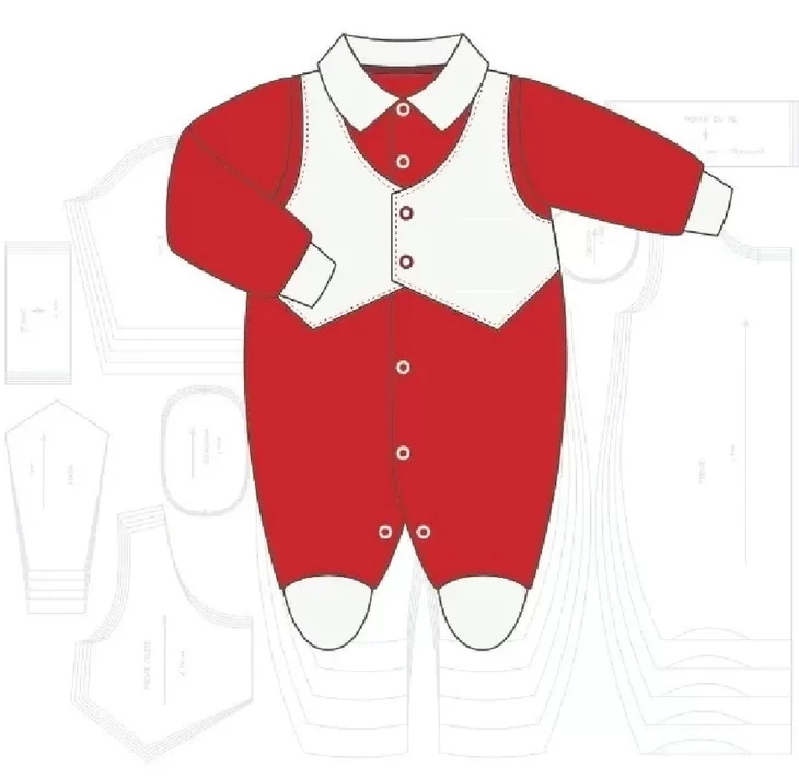 Adicione delicadeza e funcionalidade à sua produção com este molde completo para macacão de bebê.