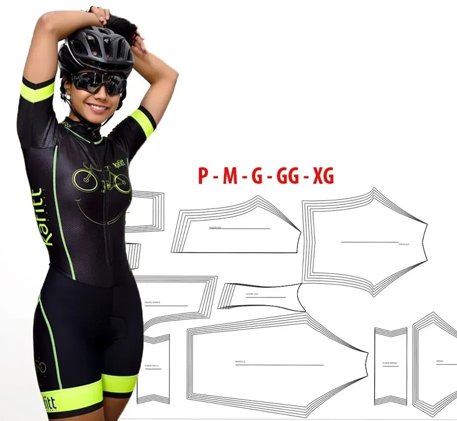 Adquira agora o Molde Macaquinho Ciclismo Feminino e produza peças modernas, confortáveis e com caimento perfeito. Além disso, os arquivos podem ser reutilizados em diversas criações, garantindo praticidade e economia.