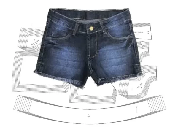 Modelagem de short jeans feminino com cós anatômico