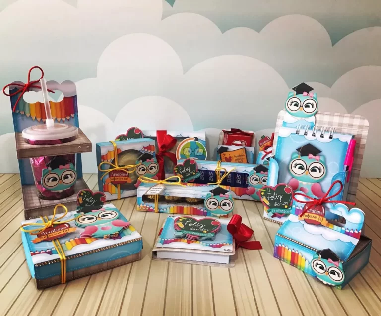 O Dia dos Professores é uma data de reconhecimento e carinho, ideal para presentear e decorar eventos escolares ou encontros de formatura. Se você busca um Pack 9 Arquivos de Corte Dia dos Professores que seja temático, elegante e ofereça uma decoração versátil e completa para presentes, encontrou o kit digital perfeito. Este combo foi meticulosamente desenvolvido para que artesãos e coordenadores criem uma festa ou evento de homenagem com facilidade, incluindo 9 arquivos diferentes de caixas e lembrancinhas.