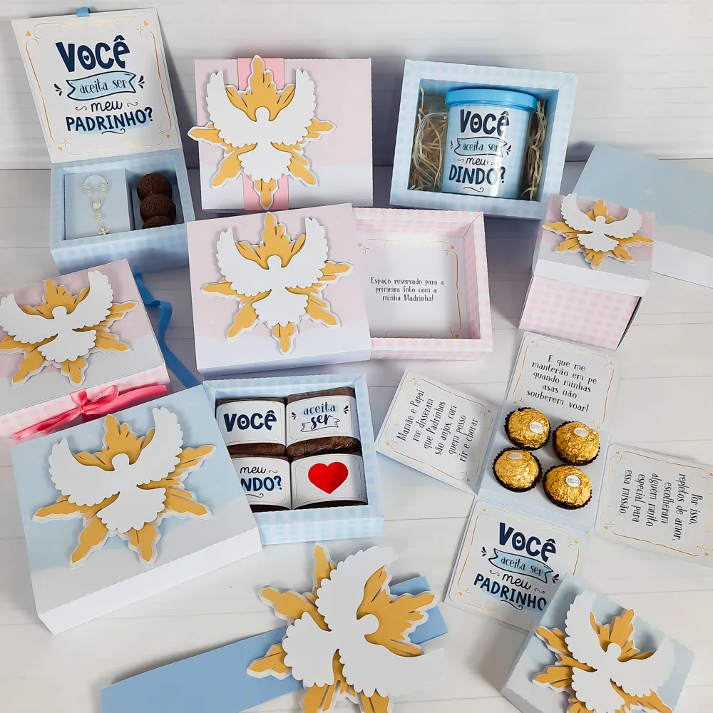 Em suma, adquirir o Pack Arquivo de Corte Combo Caixas Batizado é investir em uma decoração completa, elegante, fácil de executar e que transformará a celebração em um momento inesquecível.