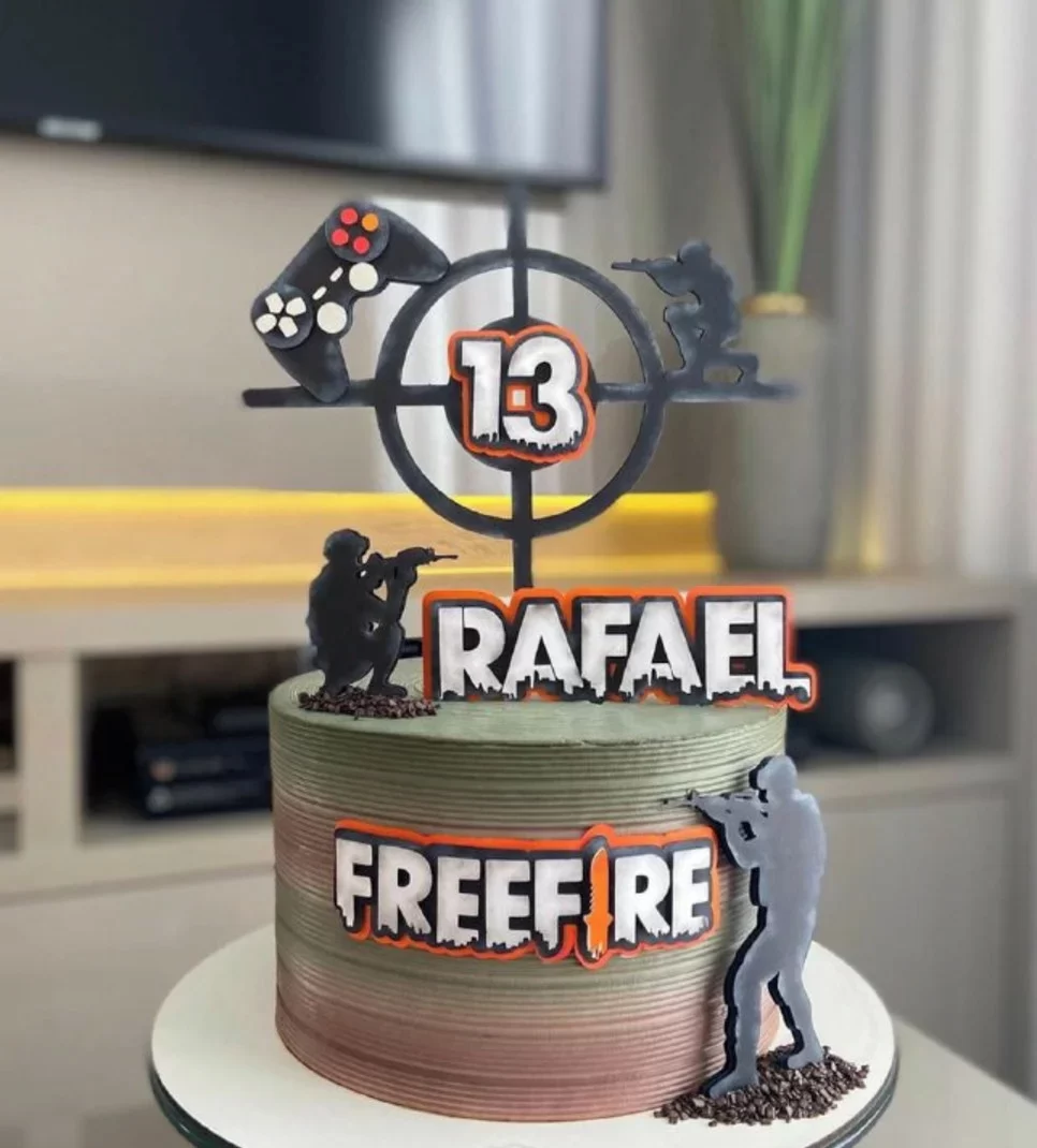 Topo de Bolo de Aniversário do Free Fire Studio – Ação e Diversão em Cada Detalhe 🔫🎉