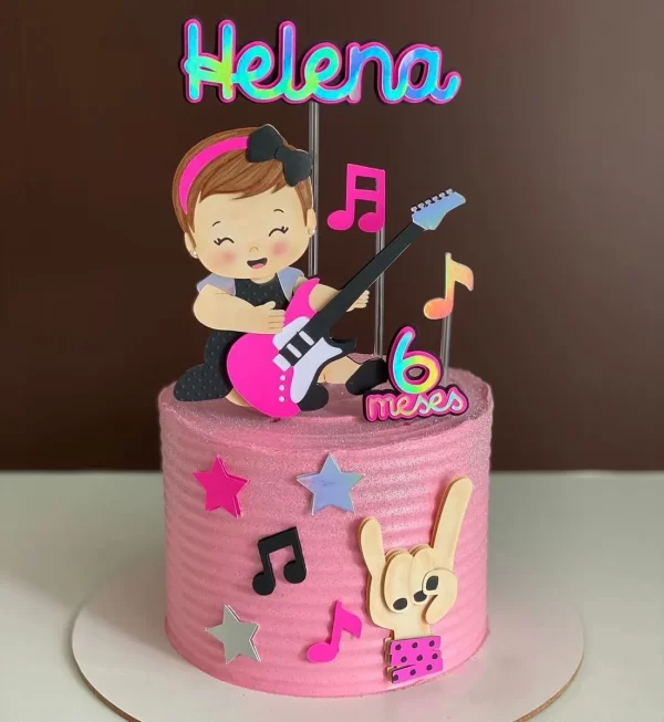 Topo de Bolo Bebê Rock Menina Studio – Estilo e Diversão para a Festa