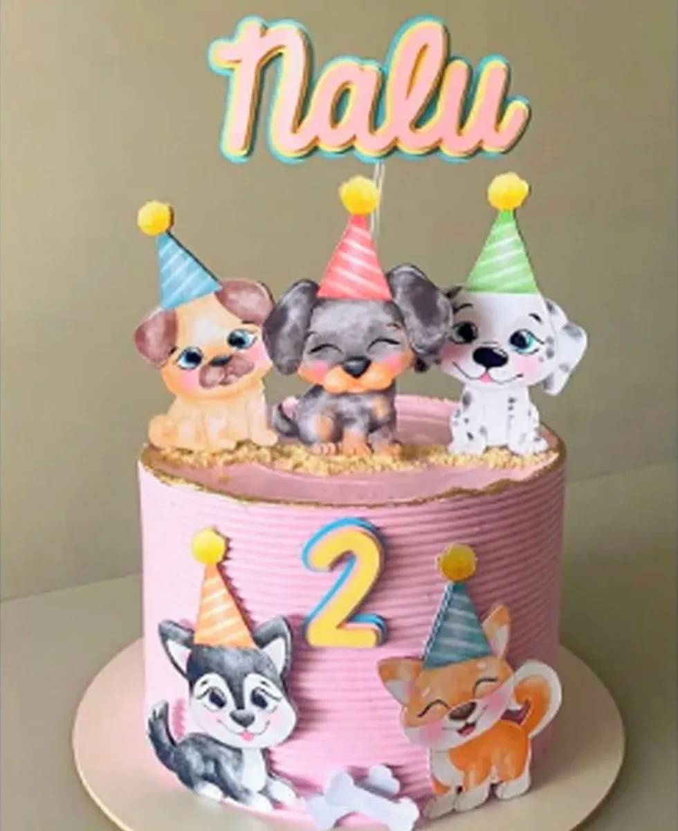 Finalidade: Criação de topper de bolo em camadas com tema pet e efeito aquarela.