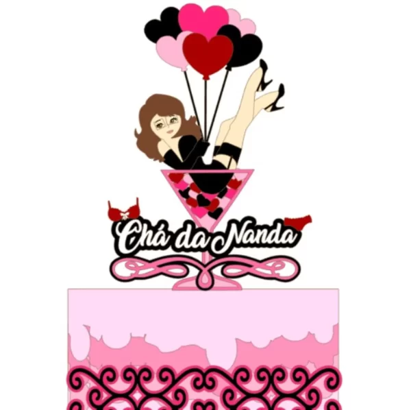 🎀 Decoração prática e encantadora Topo de Bolo Chá de Lingerie Studio