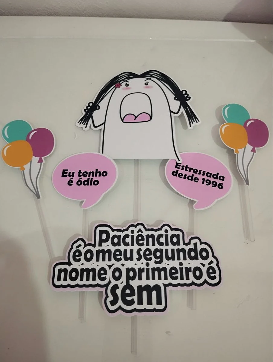 O Topo de Bolo Flork Sem Paciência Studio traz todo o humor ácido e irreverente do personagem que conquistou a internet. Com um estilo simples, expressivo e extremamente divertido, este arquivo digital permite criar topos de bolo, tags, enfeites de mesa e lembrancinhas com um visual moderno e cheio de personalidade. Assim, sua festa ganha um toque cômico e diferente, ideal para adultos e jovens que adoram memes e querem celebrar com leveza e ironia.