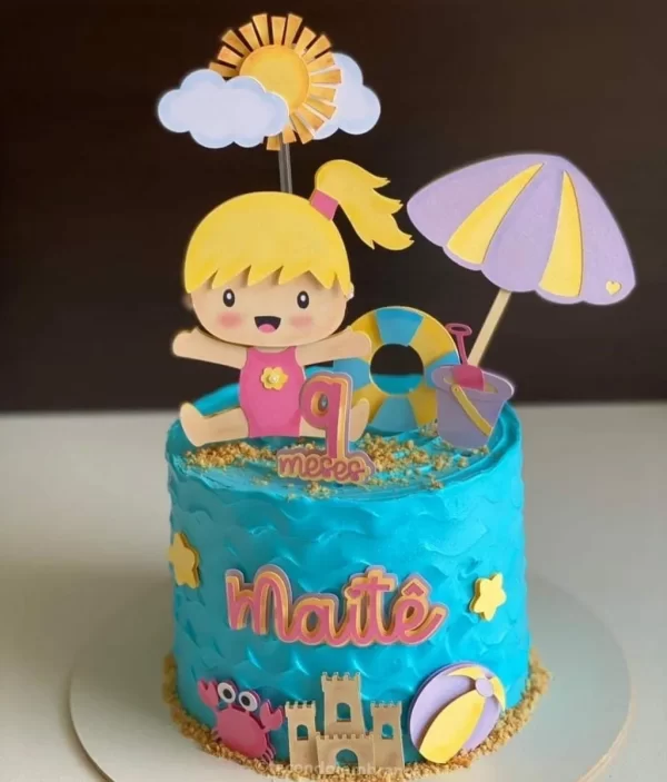 Topo de Bolo Praia Menina Studio – Arquivo Studio para Impressão e Corte | Envio Imediato por E-mail