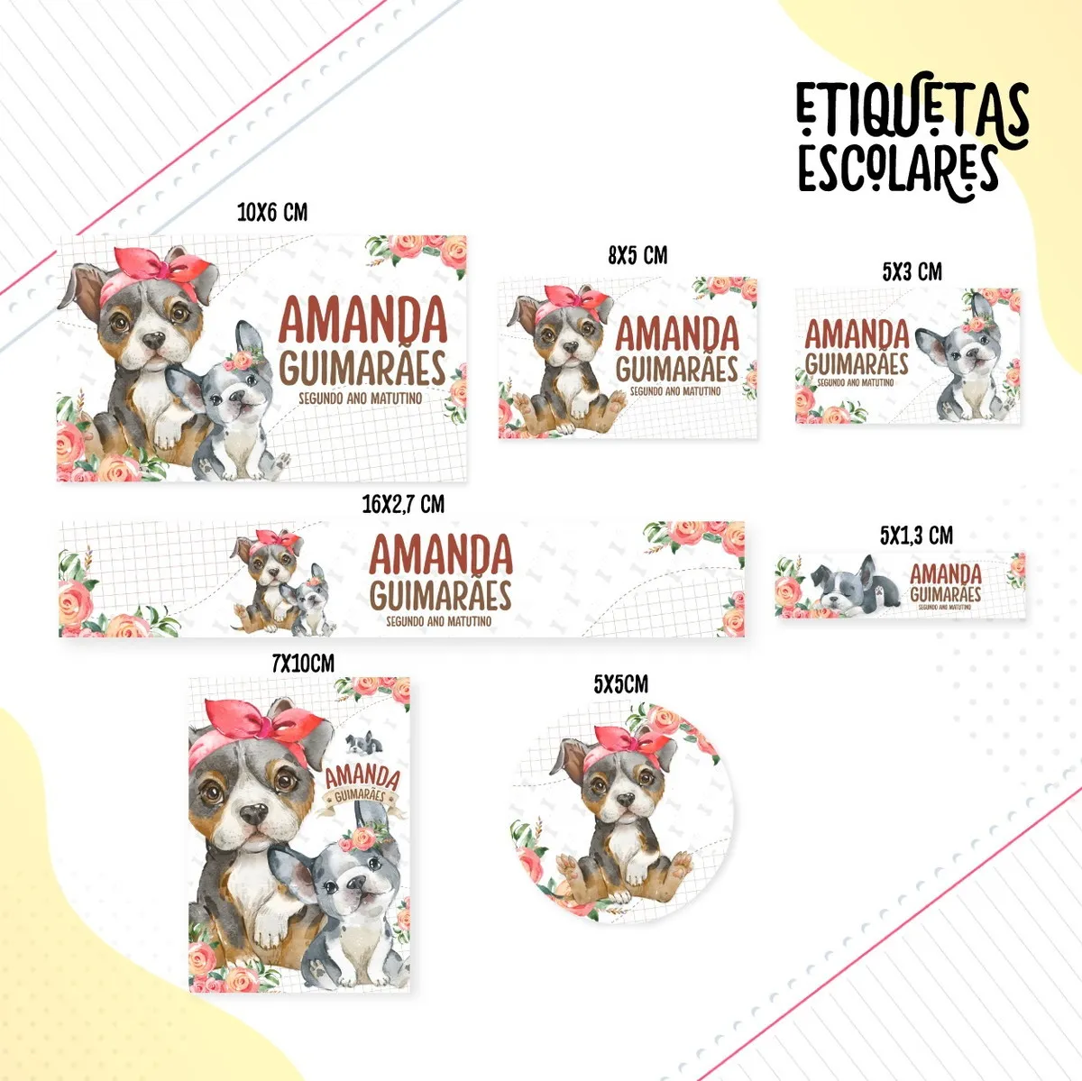 ✅ O que está incluso na Etiqueta Escolar de Cachorrinho