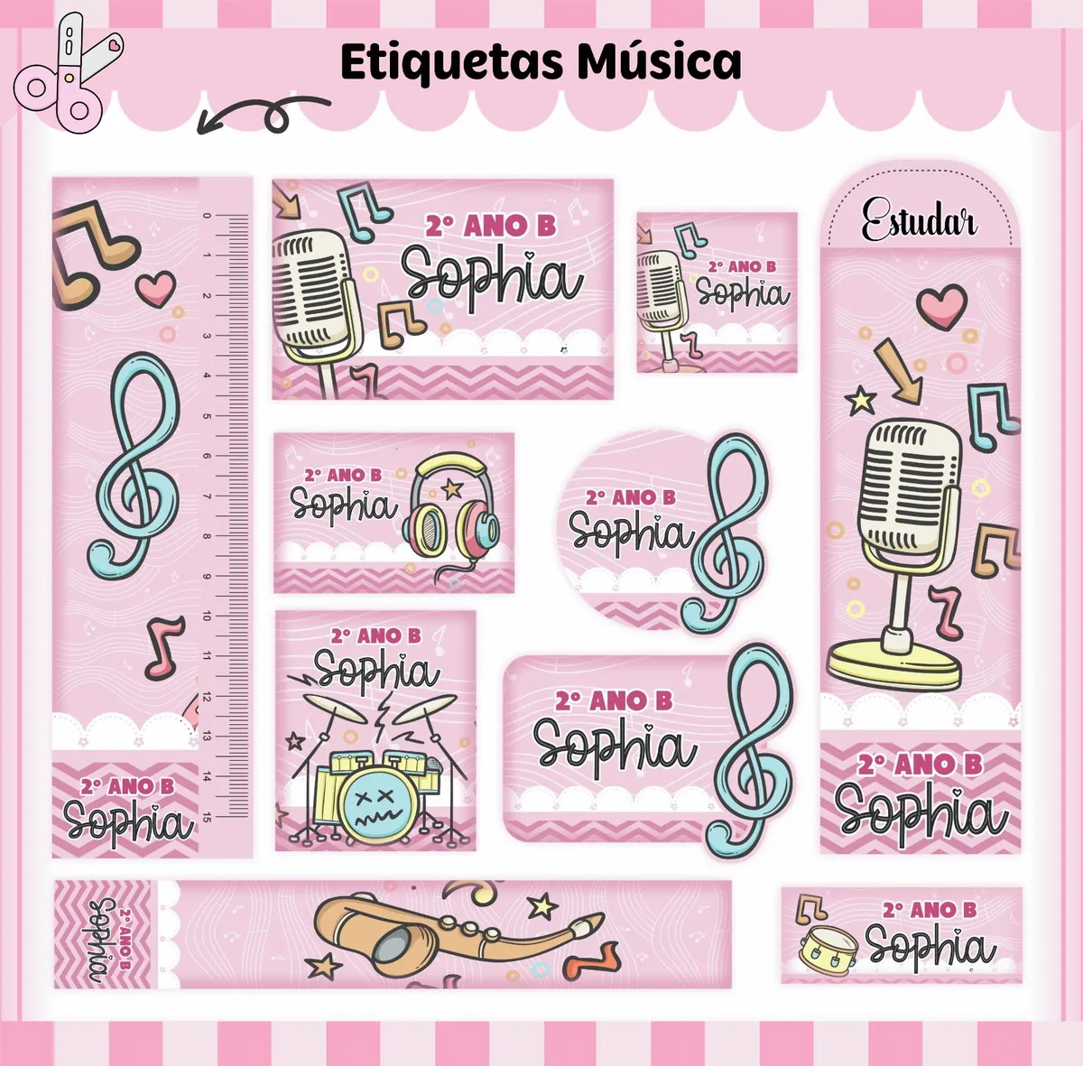 Volta às Aulas Etiqueta Escolar Música Rosa – Charme e Organização no Material Escolar