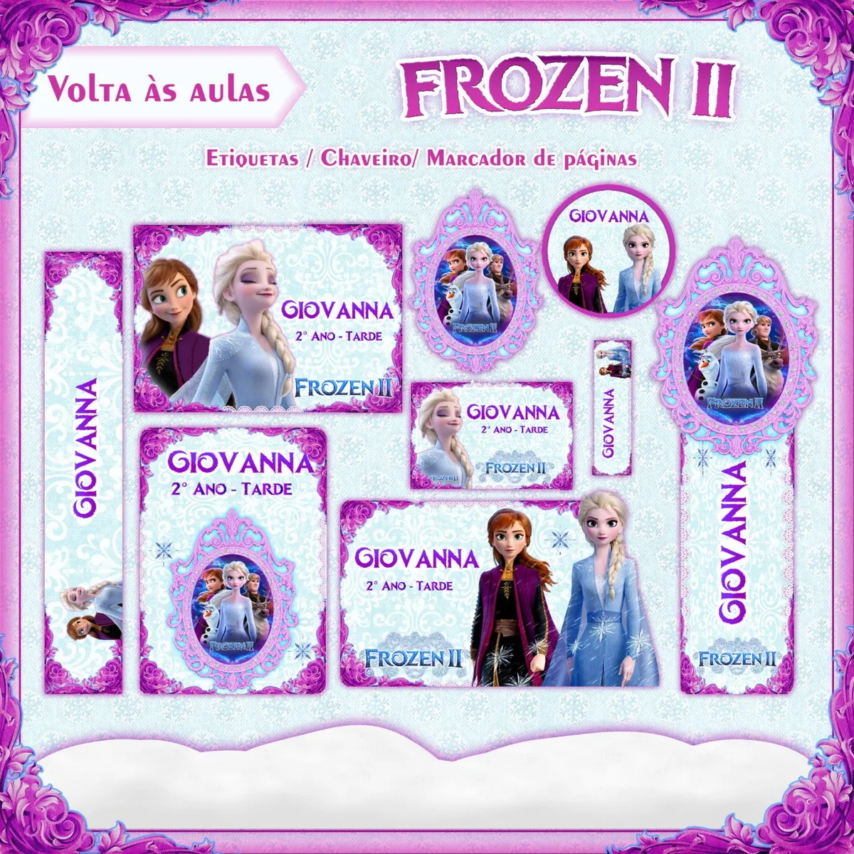 ✨ O Que Está Incluído no Produto? Volta as Aulas Etiquetas da Frozen